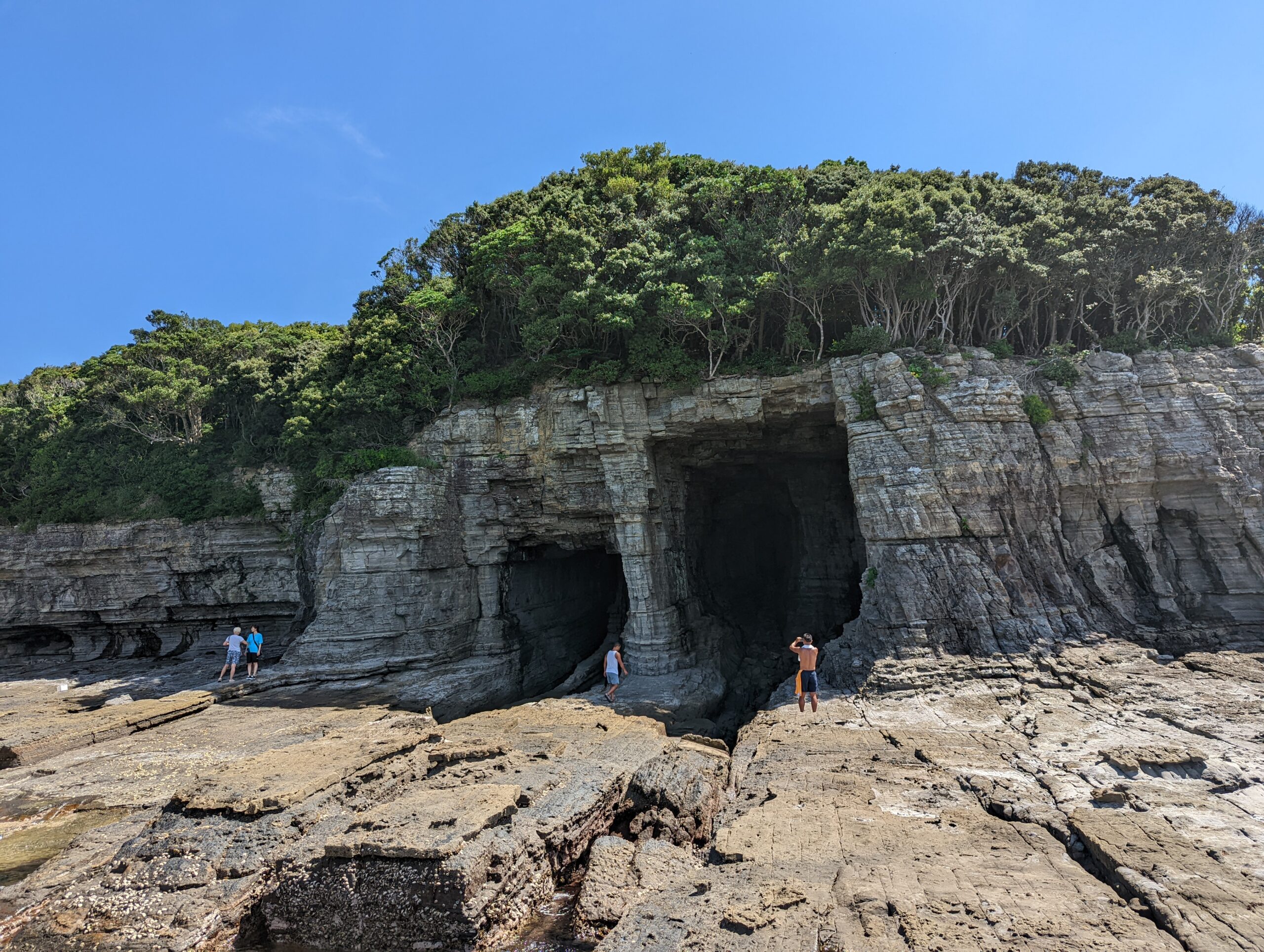 岩場を5分ほど歩くと、洞窟が見えてきます。岩場は段差も凹凸も穏やかで、比較的簡単に近づくことができます。この日は、数人のグループが2組ほど。入れ代わり立ち代わり、記念撮影。さらに人気が出てくると、順番待ちがすごいことになるかもしれませんね。