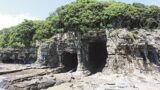 干潮にしか行けないという鳥毛洞窟。事前に調べておいた干潮の時間帯に道の駅志原海岸に到着することができたので、チャンス到来とばかりに行ってみました。本当は、干潮の時間帯より早めにつきたかったのですが、ピークの少しあとぐらいでした。